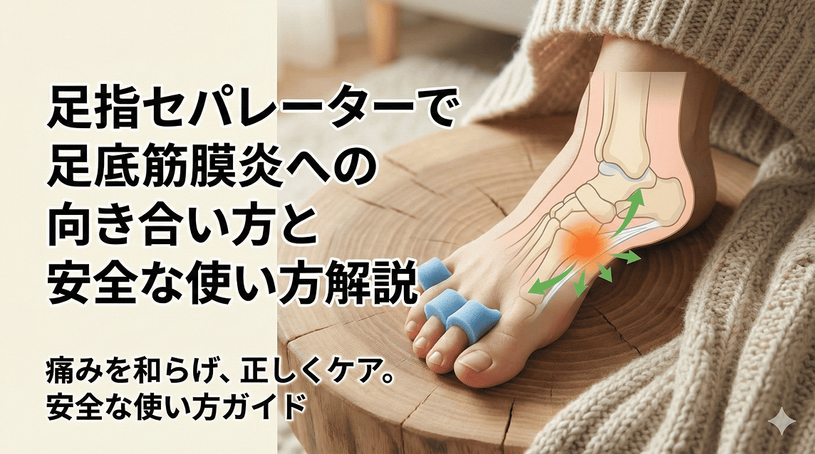寝るときのリスクや、代わりにおすすめしたい使い方については、詳しく整理した足指セパレーターを寝る時に使うリスク解説記事でもまとめています。足底筋膜炎が気になる方は、必ず安全面もセットでチェックしておくことをおすすめします。